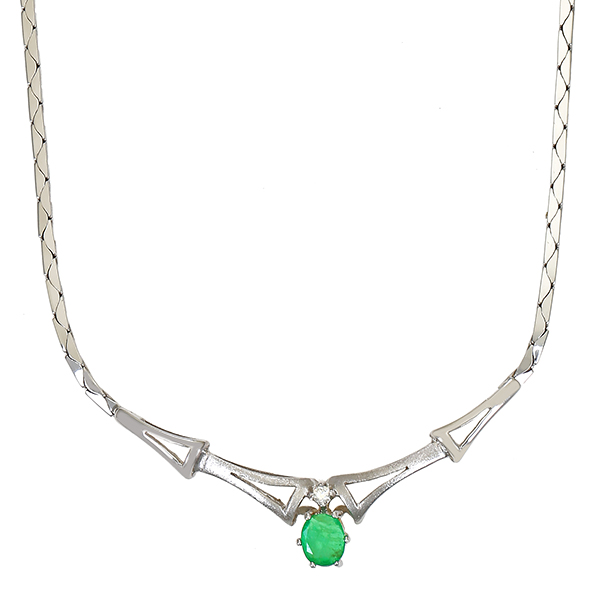 Collier, 14K, Weißgold, Smaragd, Brillant