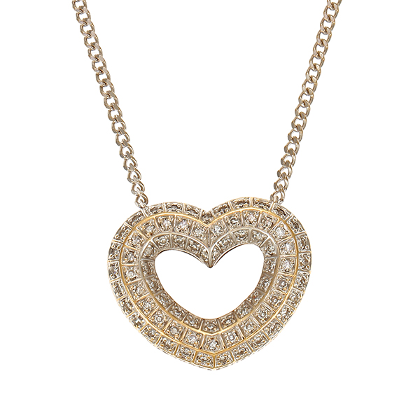 Collier, 14K, Gelb-/Weißgold, Diamanten, Herz