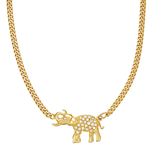 Collier, 14K, Gelbgold, Elefant