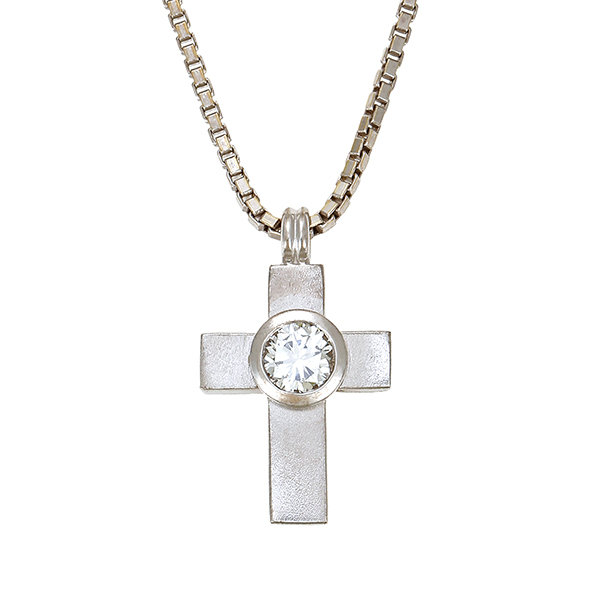 Collier, 14K, Weißgold, Brillant, Kreuz
