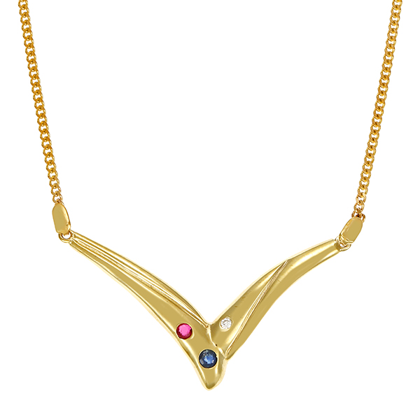 Collier, 8K, Gelbgold, Rubin, Saphir, Zirkonia