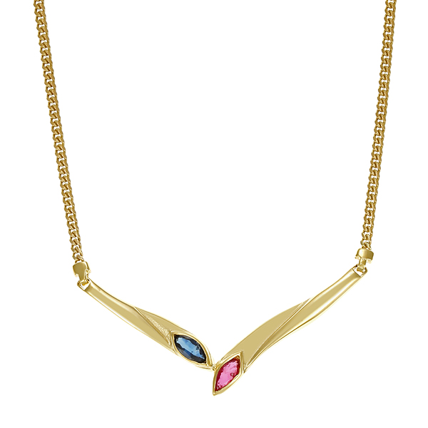 Collier, 8K, Gelbgold, Panzer-, Rubin, Saphir