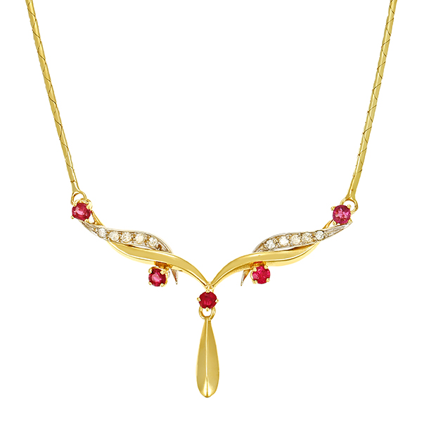 Collier, 14K, Geolb-/Weißgold, Zirkonia, synth. Rubin