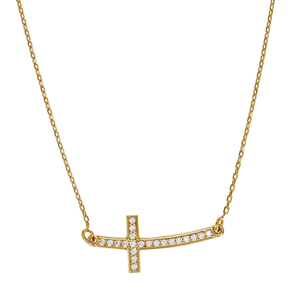 Collier, 14K, Gelbgold, Zirkonia, Kreuz