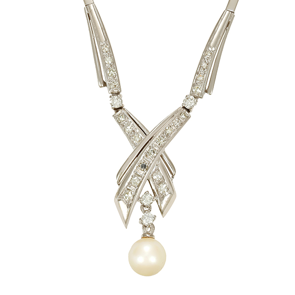 Collier, 14K, Weißgold, Perle, Diamanten, Brillanten