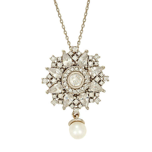 Collier, 14K, Weißgold, Perle, Zirkonia