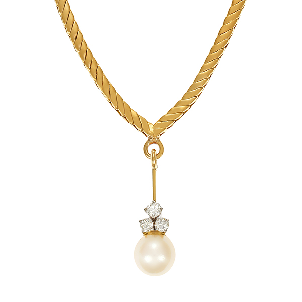 Collier, 18K, Gelb-/Weißgold, Perle, Brillanten, Diamant