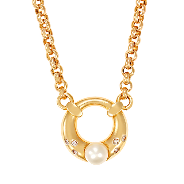 Collier, 14K, Gelb-/Weißgold, Brillant, Perle