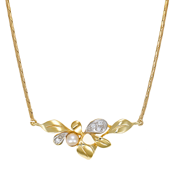 Collier, 8K, Gelbgold, Perle, Zirkonia