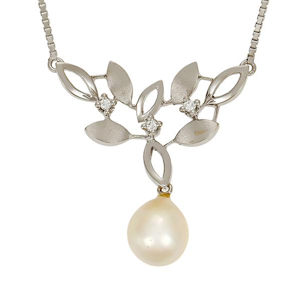 Collier, 14K, Weißgold, Perle, Brillanten