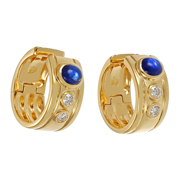 Creolen, 18K, Gelbgold, Saphire, Brillanten 0,40 ct