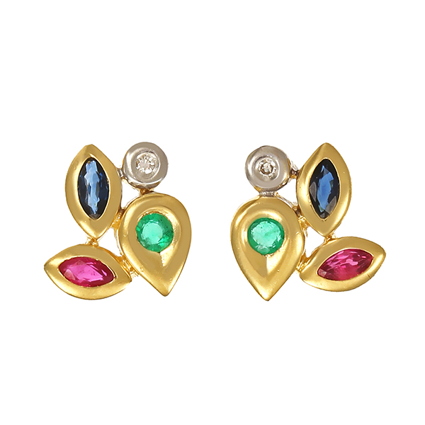 Ohrstecker, 14K, Gelbgold, Rubin, Saphir, Smaragd, Diamant