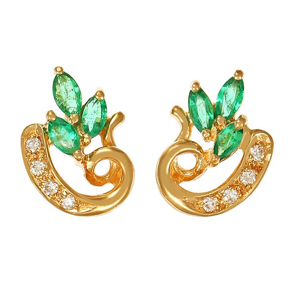 Ohrstecker, 14K, Gelbgold, Smaragd, Brillant