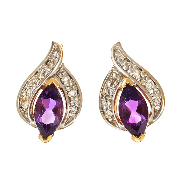 Ohrschmuck, 14K, Gelb-/Weißgold, Amethyste & Diamanten, Ohrstecker