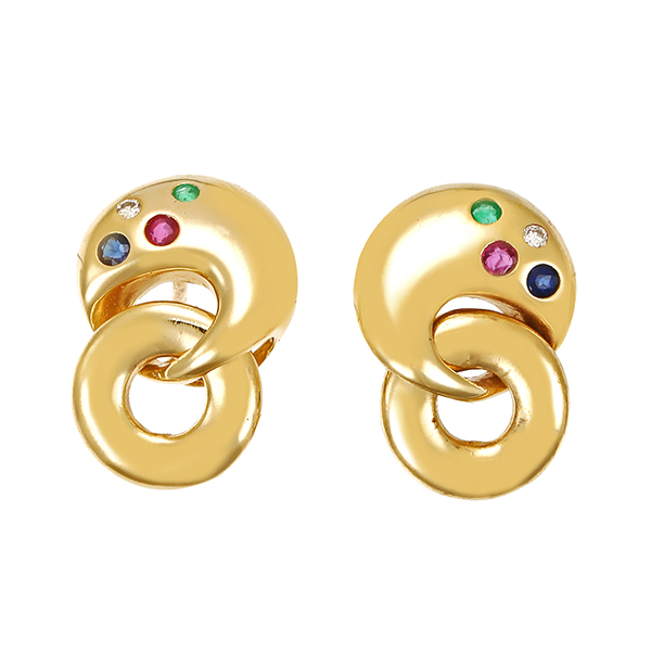 Steine / Besatz: | 2 Saphire 2 Rubine 2 Smaragde 2 Brill. z.ca. 0,02 ct |