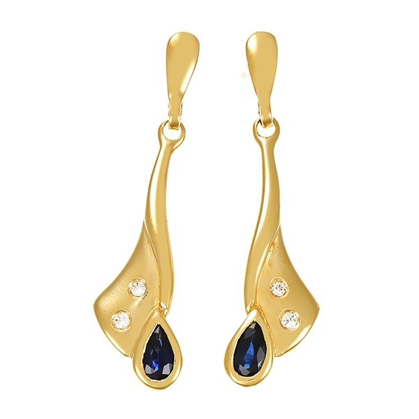 Steckhänger, 14K, Gelbgold, Saphir, Zirkonia