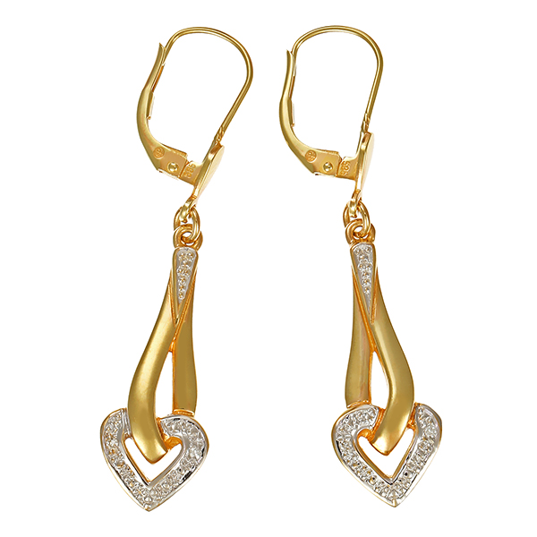 Ohrhänger, 14K, Gelb-/Weißgold, Diamanten, Herz