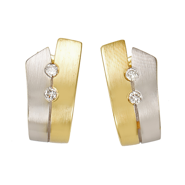 Creolen, 14K, Gelb-/Weißgold, Brillanten