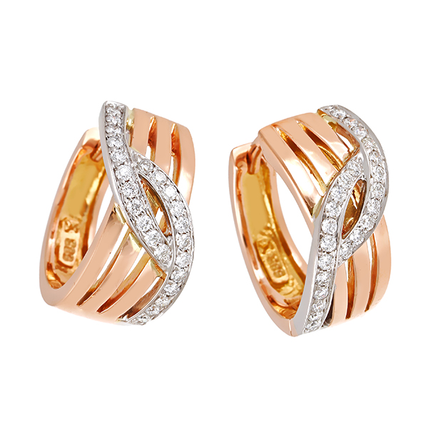 Creolen, 14K, Rot-/Weißgold, Brillanten