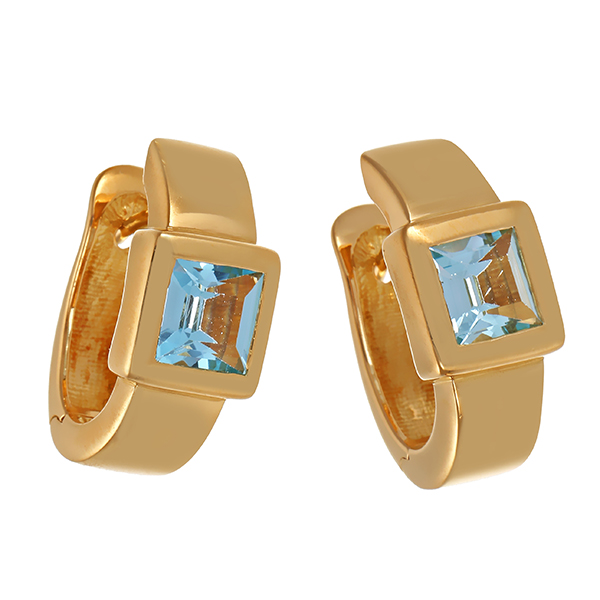 Creolen, 18K, Gelbgold, Topas blau