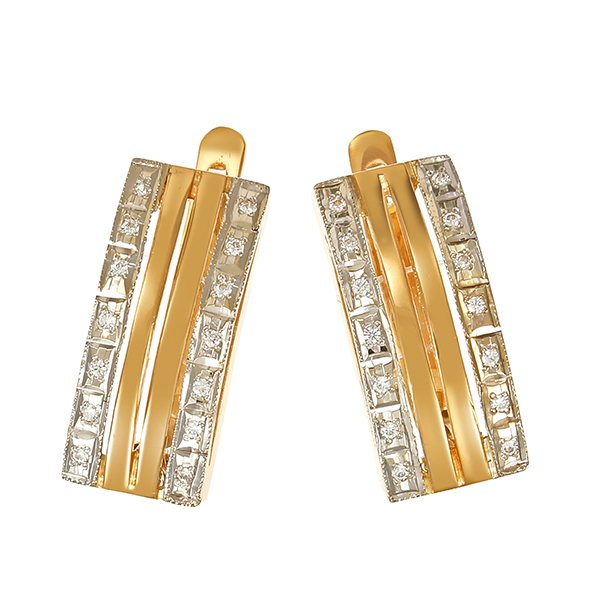 Steckhänger, 14K, Gelb-/Weißgold, Zirkonia