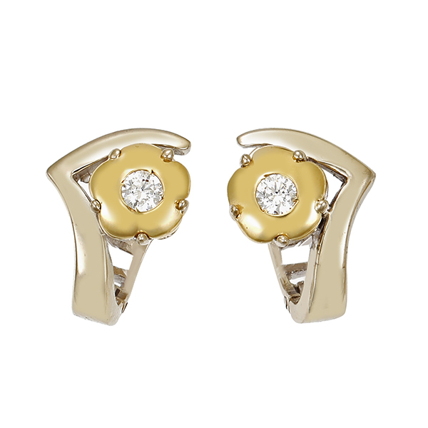 Clip-Stecker, 14K, Gelb-/Weißgold, Zirkonia