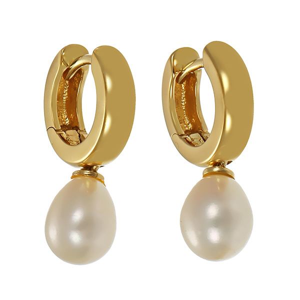 Creolen, 14K, Gelbgold, 2 Zuchtperlen