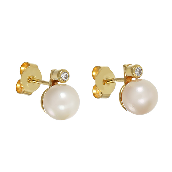Ohrstecker, 14K, Gelbgold, Brillanten, Perlen
