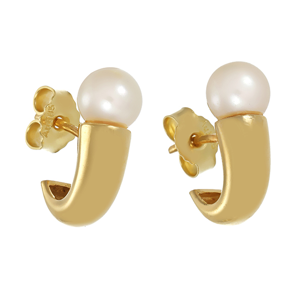 Steckcreolen, 14K, Gelbgold, Perle