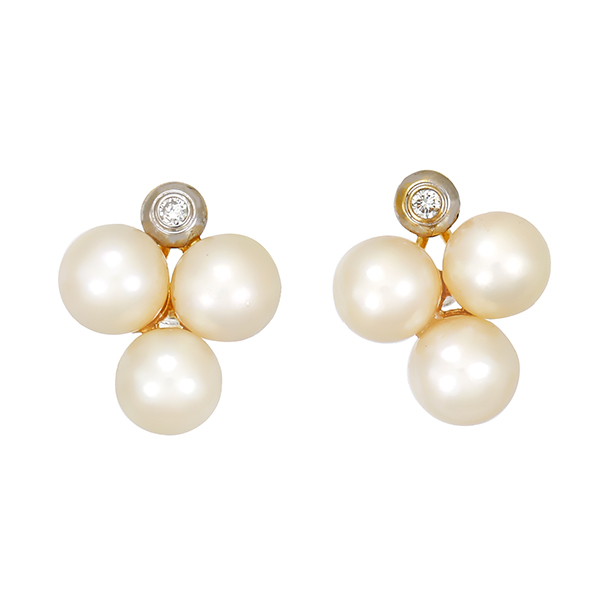 Ohrstecker, 14K, Gelb-/Weißgold, Perlen, Brillanten