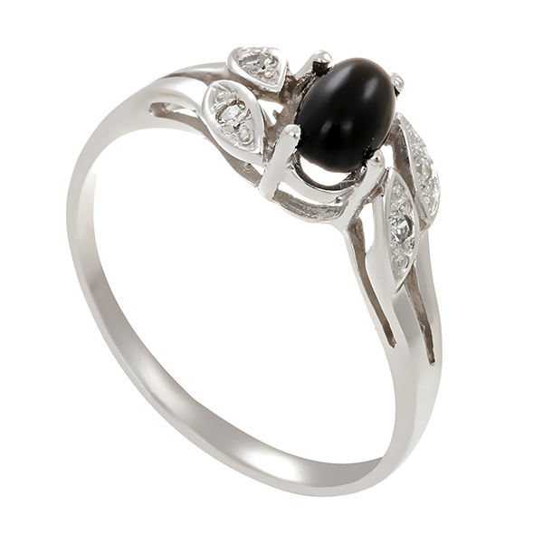 Ring, 14K, Weißgold, Onyx, Diamanten