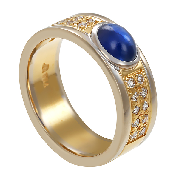 Ring, 18K, Gelb-/Weißgold, Brillanten 0,30 ct, Saphir