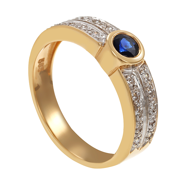 Ring, 14K, Gelb-/Weißgold, Saphir, Diamanten