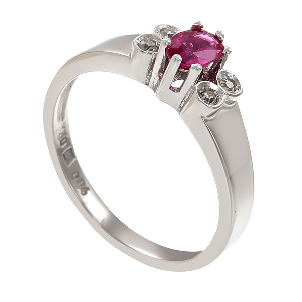 Ring, 18K, Weißgold, rhodiniert, Diamant, Rubin