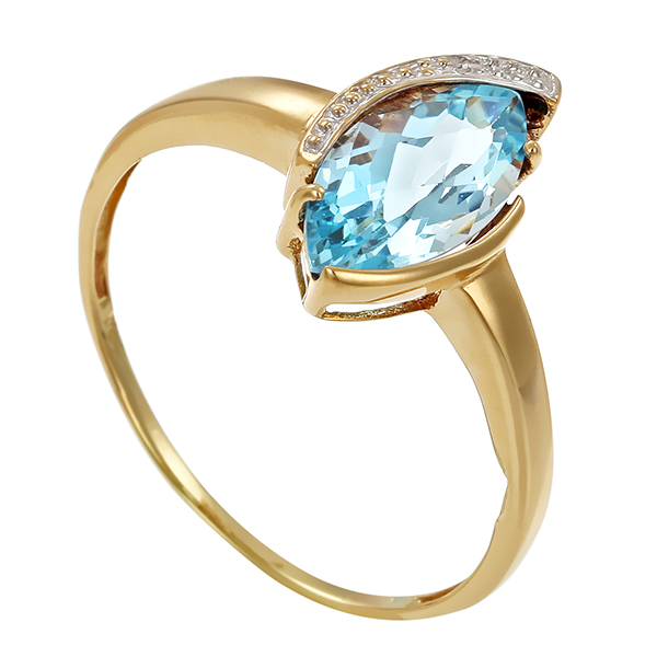 Damenring, 14K, Gelbgold, Topas blau, Diamant
