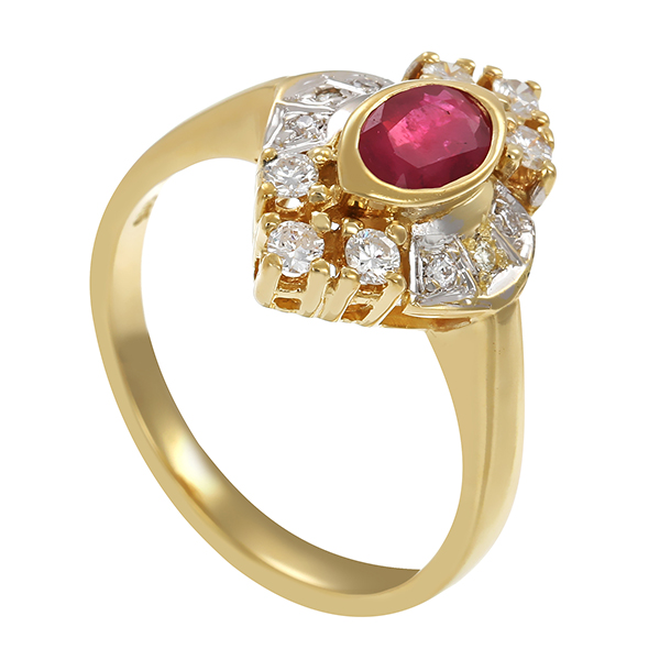Ring, 14K, Gelb-/Weißgold, Rubin, Brillant, Diamant