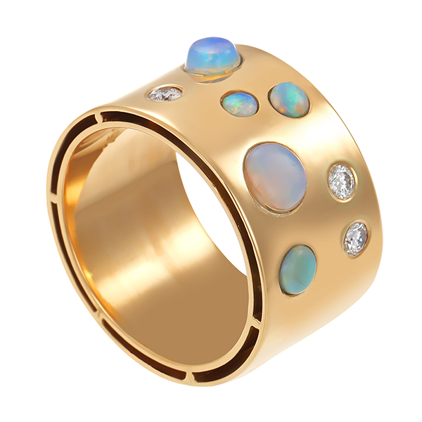 Ring, 18K, Gelbgold, Opale, Brillanten 0,18 ct