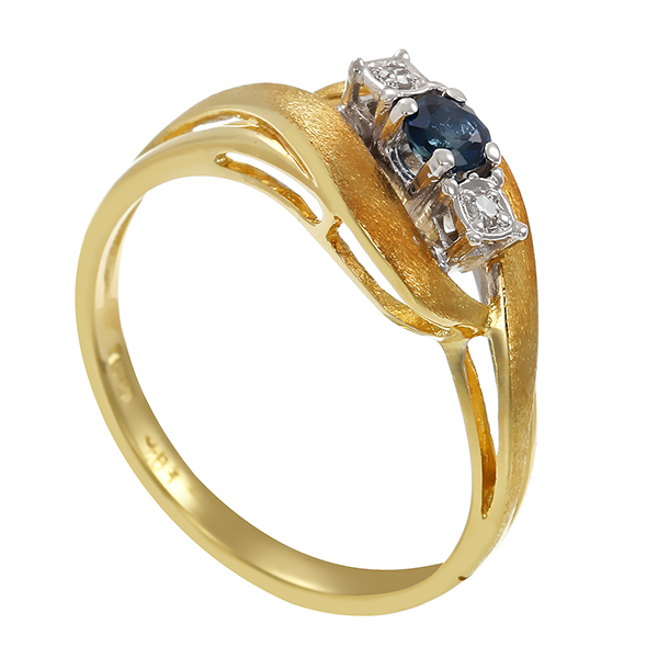 Ring, 14K, Gelbgold, Saphir, Diamanten