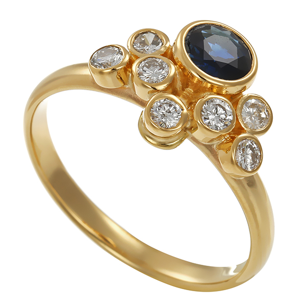 Ring, 14K, Gelbgold, Brillant, Saphir