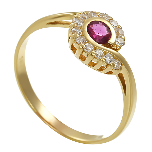 Ring, 14K, Gelbgold, Rubin, Brillanten