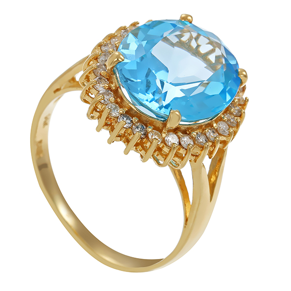 Ring, 14K, Gelbgold, Brillant, Topas blau