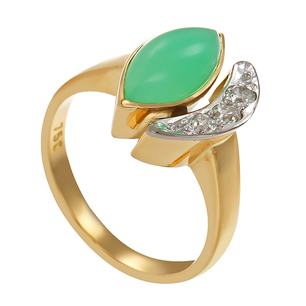 Ring, 18K, Gelb-/Weißgold, Chrysopras, Diamanten