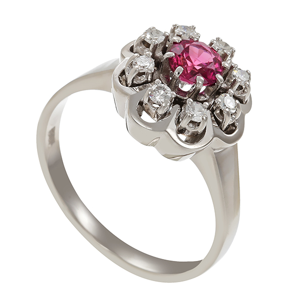 Ring, 14K, Weißgold, Diamanten & Rubin, U56