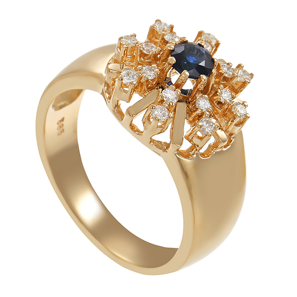 Ring, 14K, Gelbgold, Saphir, Brillanten 0,24 ct