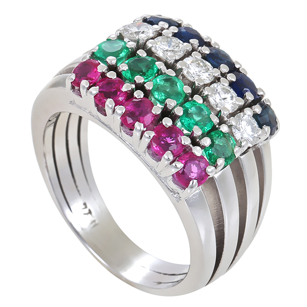Ring, 18K, Weißgold, Rubin, Saphir, Smaragd