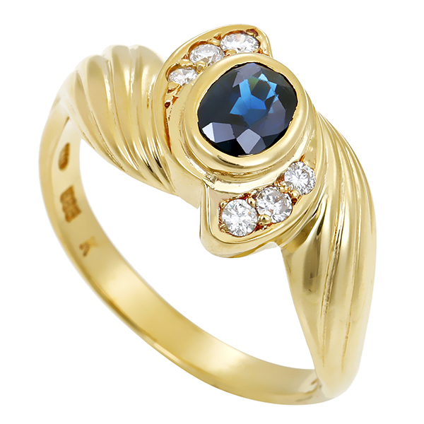 Ring, 14K, Gelbgold, Saphir, Brillanten 0,12 ct