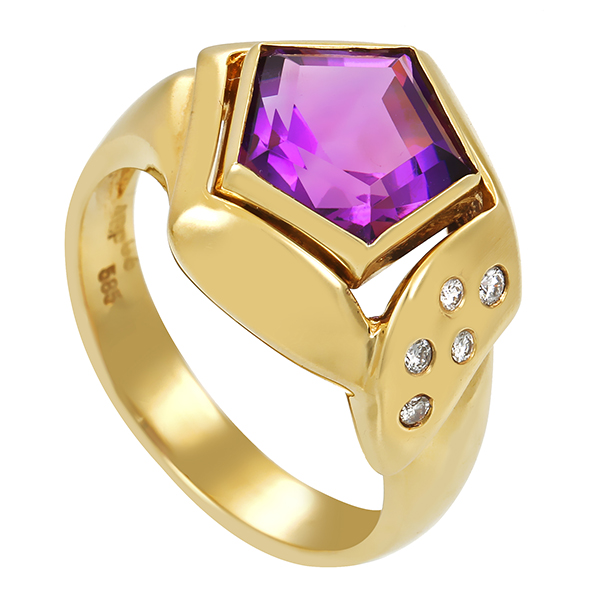 Ring, 14K, Gelbgold, Amethyst, Brillanten