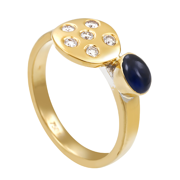 Ring, 18K, Gelb-/Weißgold, Saphir, Brillanten