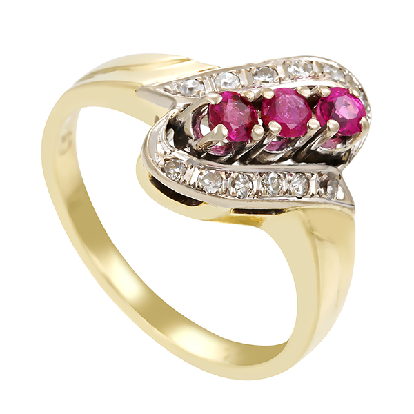 Ring, 14K, Gelb-/Weißgold, Rubine, Diamanten
