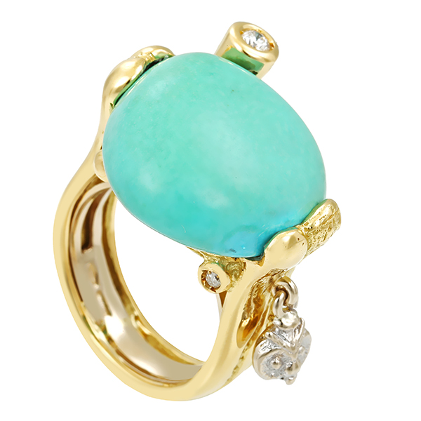 Ring, 18K, Gelbgold,. Türkis, Brillanten